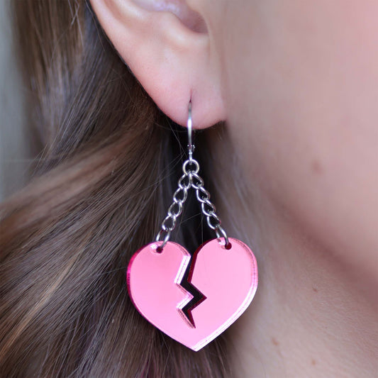 Broken Hearts — Acrylic Earrings, Pink Mirror