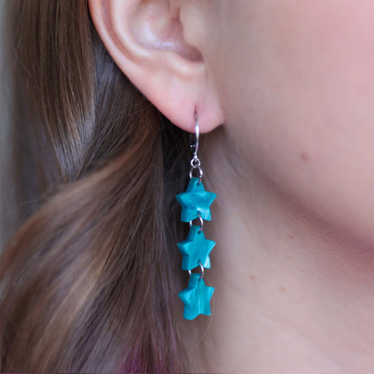 Mis-matched Moon and Stars Acrylic Earrings - Blue, Gold, Silver, Black