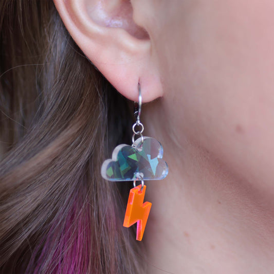 Lightning Bolt with Iridescent Clouds — Acrylic Earrings