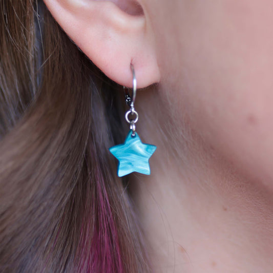 Mis-matched Moon and Star Acrylic Earrings - Blue, Gold, Silver, Black