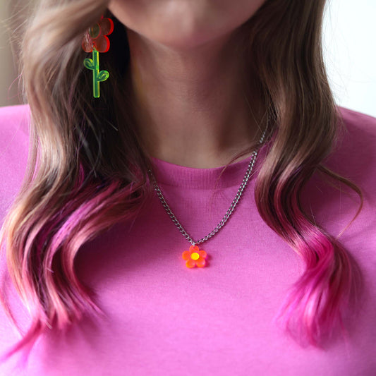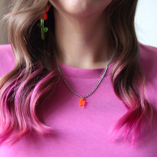 Tiny Lightning Necklace - Fluorescent Pink, Orange, Yellow, Green