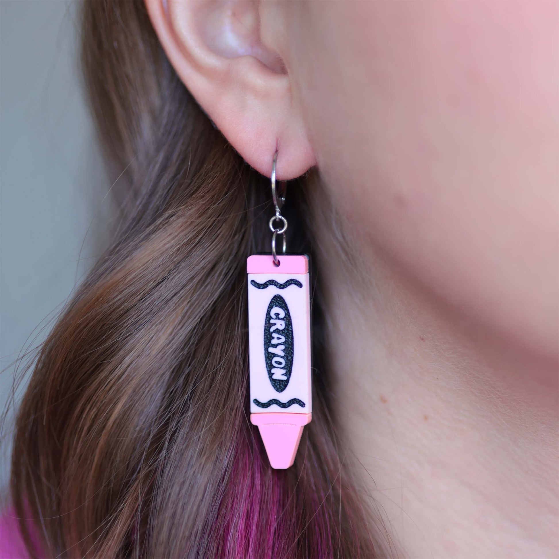 Crayon Acrylic Earrings - Pink, Green, Blue, Purple