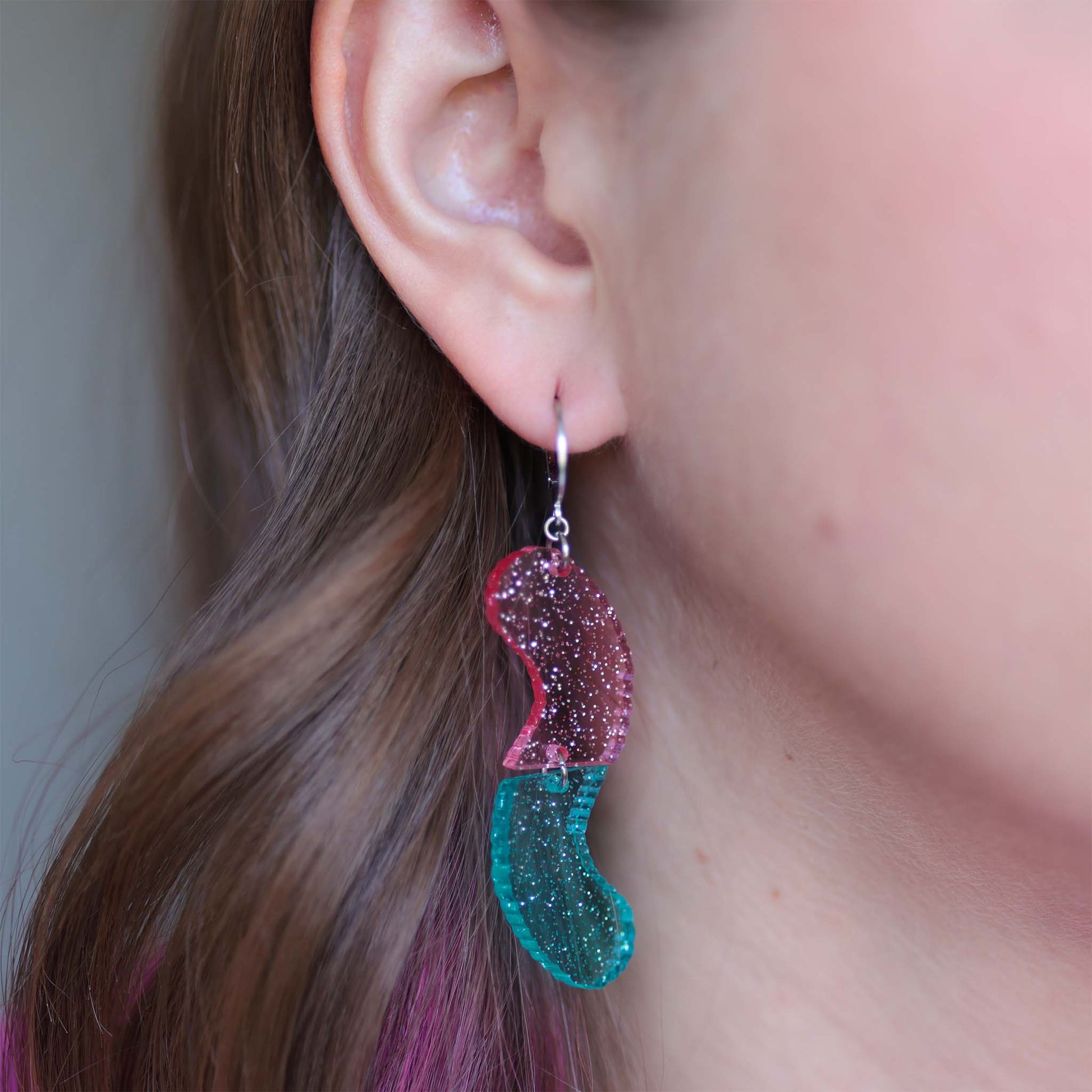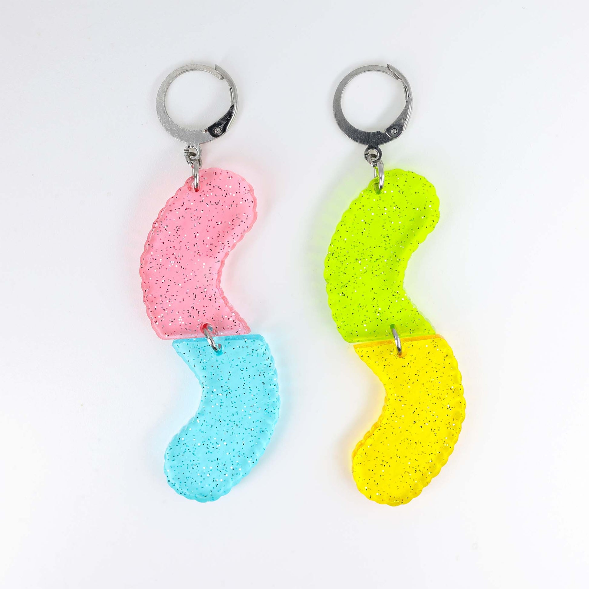 Sour Gummy Worms - Glitter, Mis Match Acrylic Earrings
