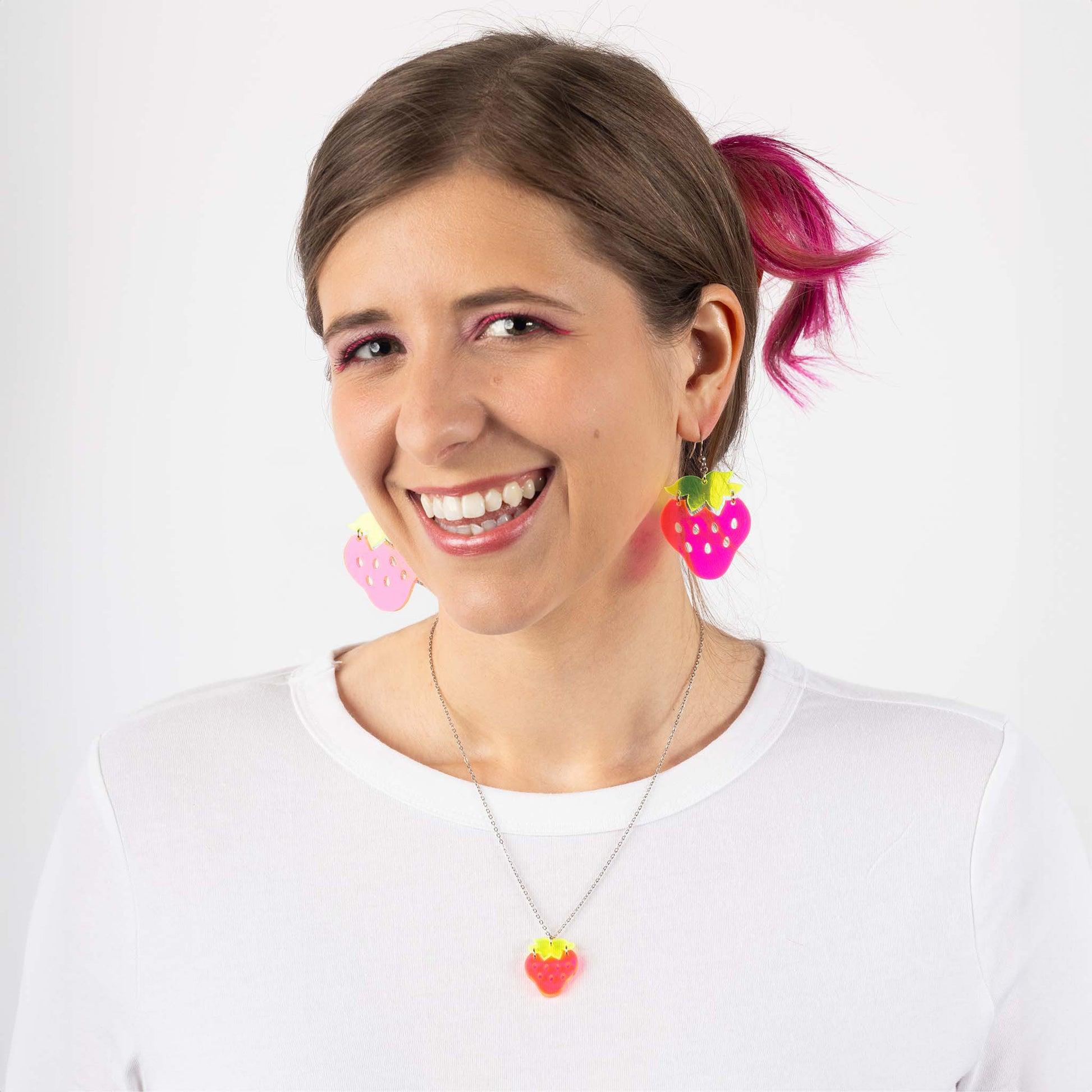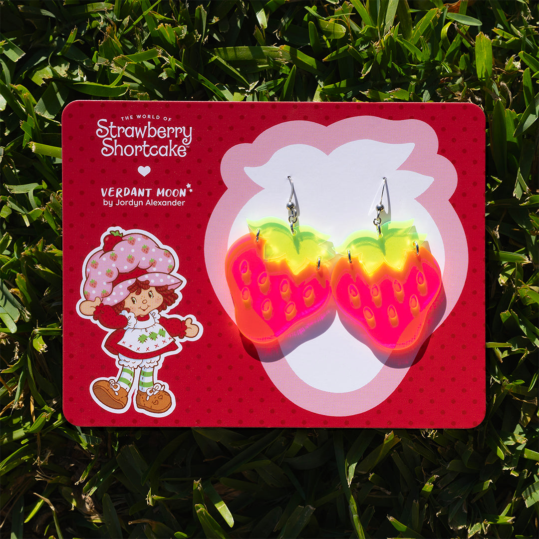 A berry sweet part of my officially licensed Strawberry Shortcake x Verdant Moon collection. Hand-crafted with glowy, laser-cut acrylic, this design is also available as a matching necklace or a suncatcher.