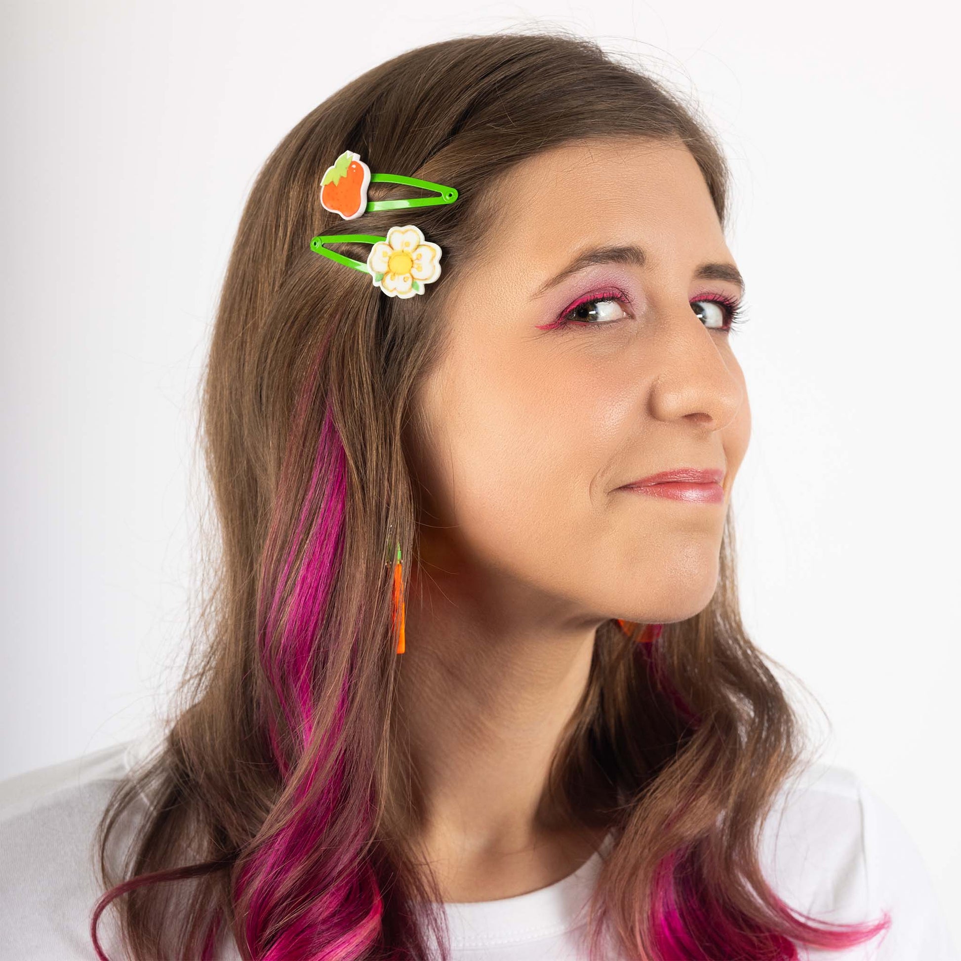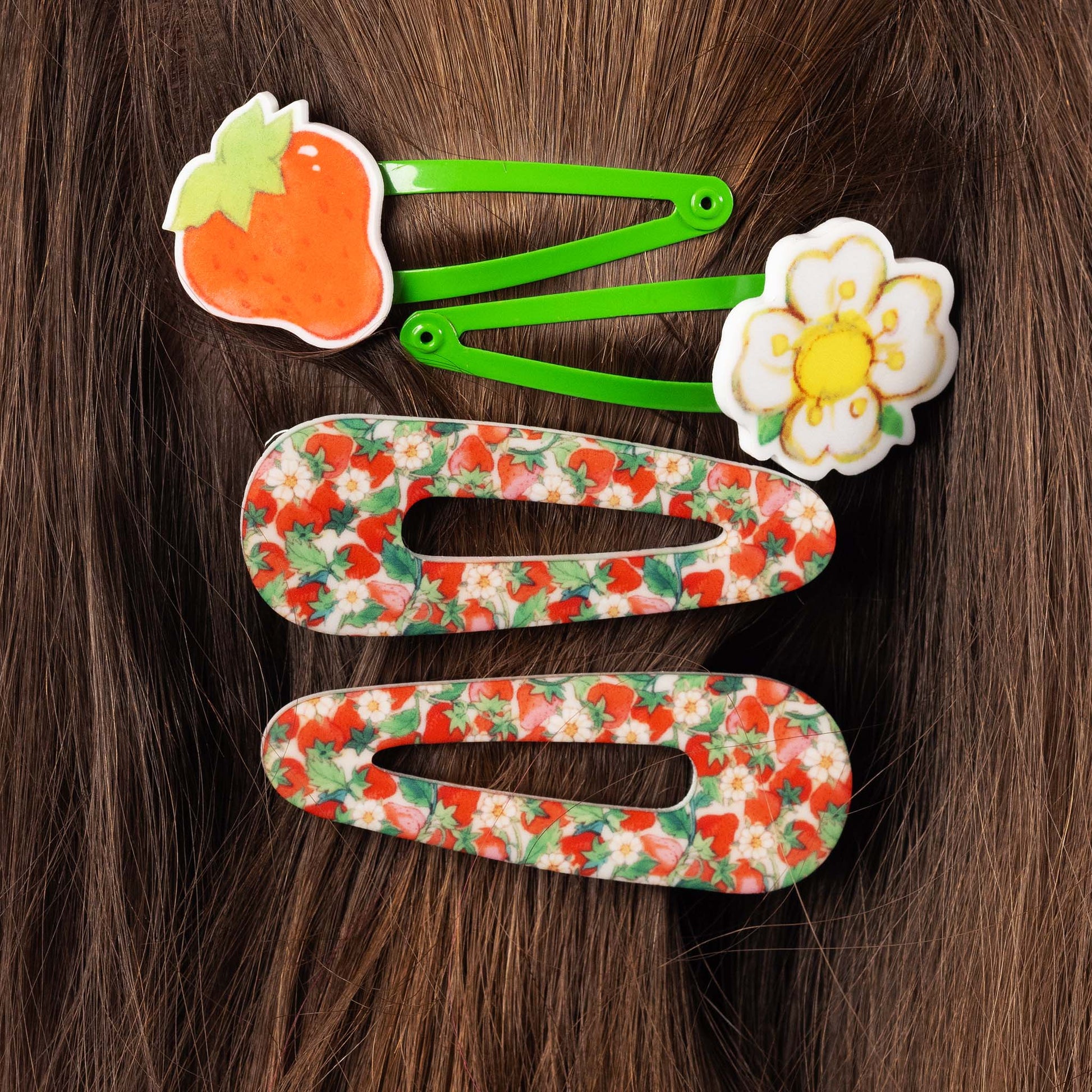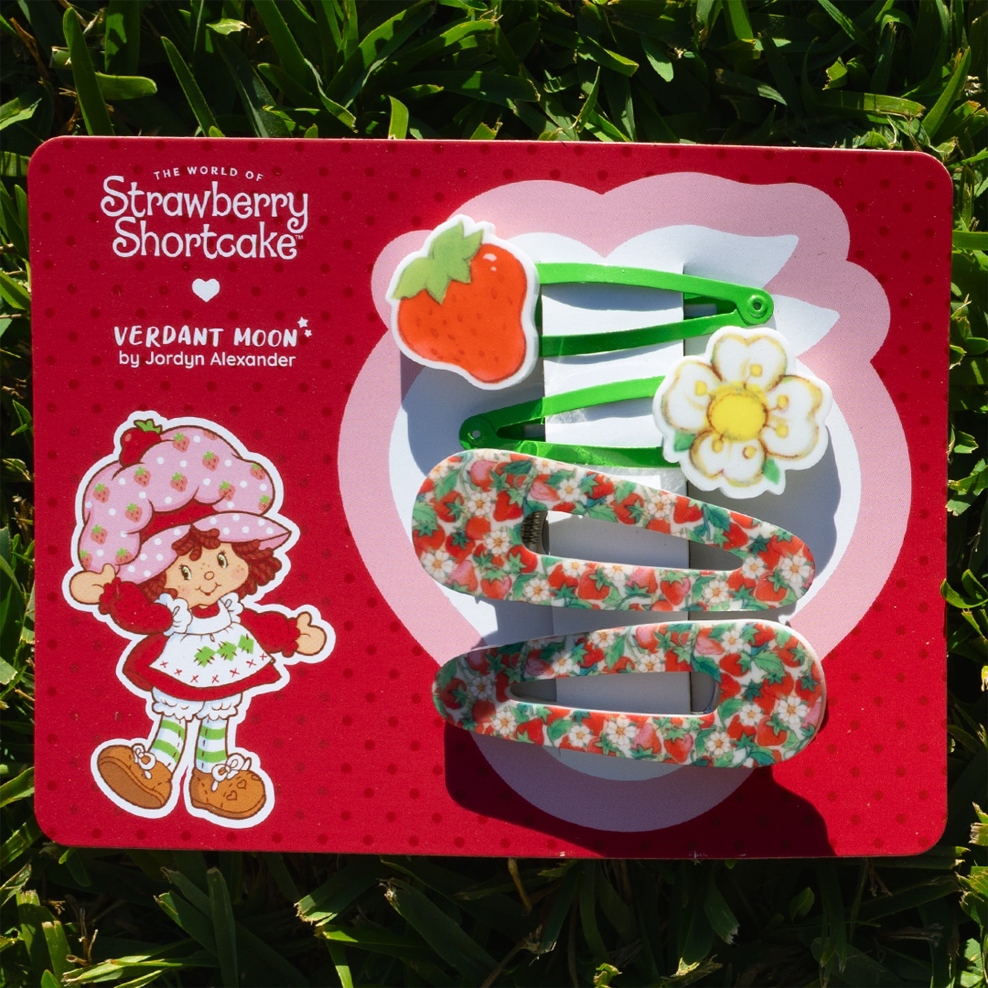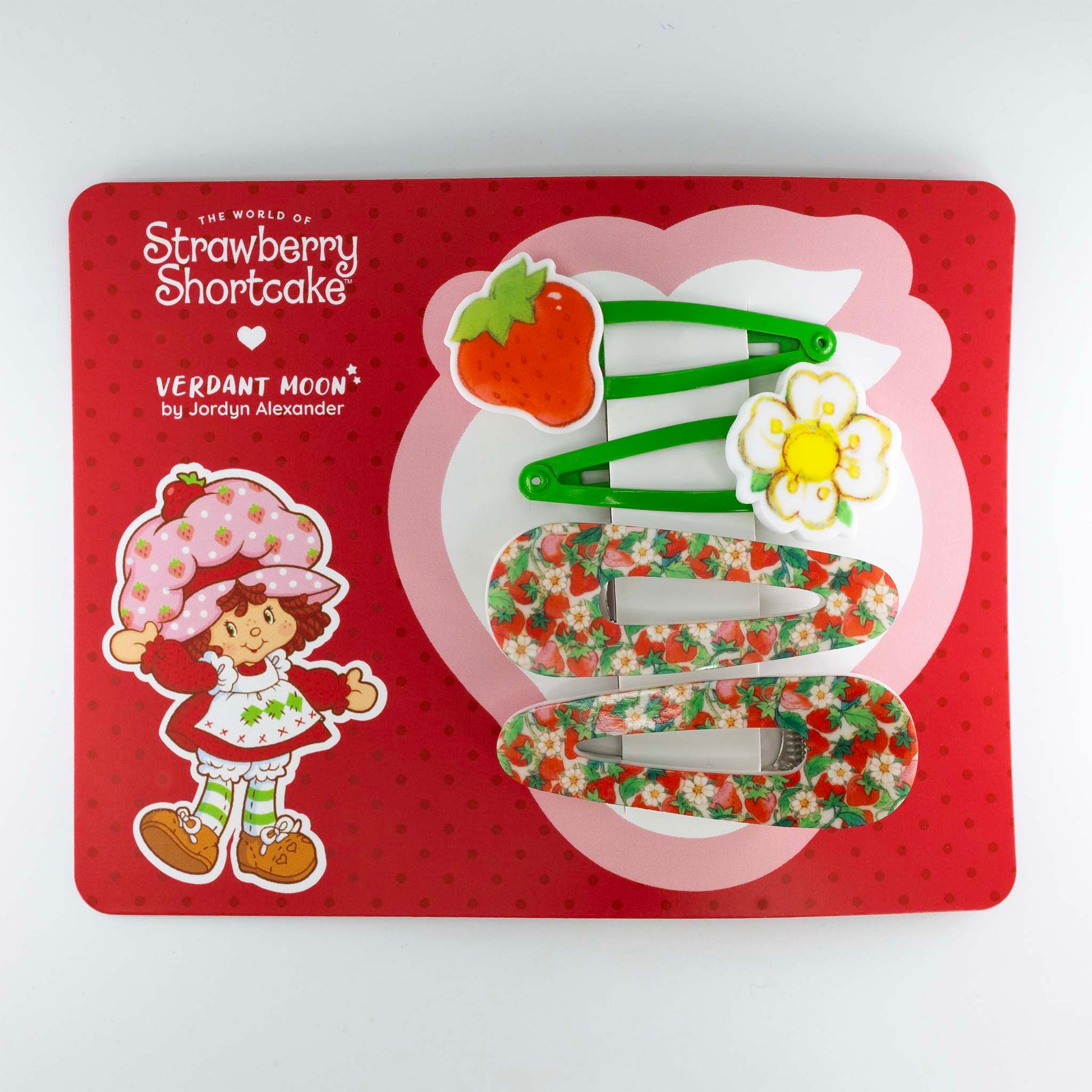 A berry sweet part of my officially licensed Strawberry Shortcake x Verdant Moon collection. Hand-crafted with vibrantly printed laser-cut acrylic, this four-piece hair clip set embodies Strawberry Shortcake's iconic sweetness.